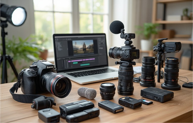 Audio equipment often gets overlooked but remains critical for wedding videography success. Wireless lavalier microphones for ceremony audio, shotgun mics for reception speeches, and backup recording devices ensure you capture clear audio throughout the day. Poor audio quality ruins otherwise perfect footage.